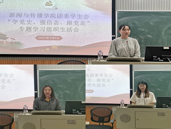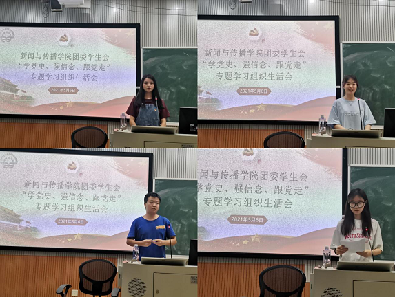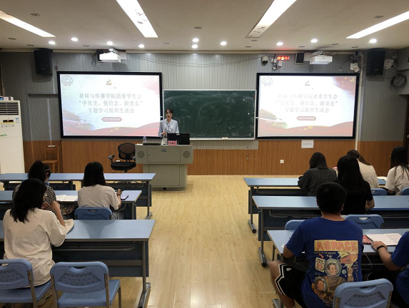2021年5月6日20时,新闻与传播学院团委学生会于文星楼414召开“学党史、强信念、跟党走”专题学习组织生活会,学院团委书记李樱花老师出席会议,学院主席团成员代表及本科、研究生班级团支部书记参会。会议由团委副秘书长李春红同学主持。