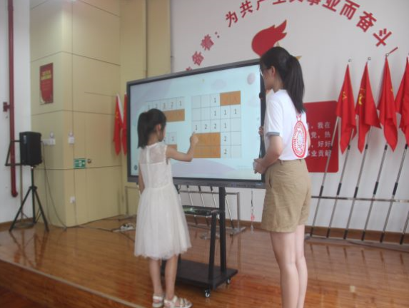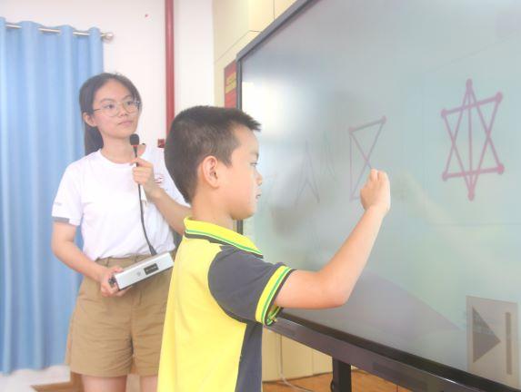 “七彩课堂”又为阳光课堂,旨在帮助每位学生能够培养健康向上的心态,提高沟通交流能力,提高科学文化素养。实践队队员们课前精心备课、磨课,深入贯彻并体现了“以学定教、先学后教、少教多学、以学为主”的“生本教学”理念。此次七彩课堂主要包括“故事中的数学”、“画中的数学”、“扫雷与一笔画游戏”以及第二课堂的“民族团结”手抄报活动等几个部门。在“故事中的数学”中,实践队队员给小朋友们讲故事,在故事中穿插着数学问题,让小朋友们参与其中,感受到数学的魅力;在“画中的数学”中,让小朋友们自由运用几何形状画出图形,领略数学图形之美;通过“扫雷”与“一笔画”等益智游戏,利用“学+玩”的方式,提高小朋友的计算和推理能力;在“民族团结”手抄报中,不仅培养了孩子们的画画能力、提高思维能力及学习兴趣,还增强了小学员们的民族团结意识,画出他们心中的团结民族大家庭。活动结束后,小学员们纷纷表示,通过此次七彩课堂的开展,感受到了数学之美,也意识到作为一名学生的责任,今后会好好学习,努力成才,为社会作贡献。