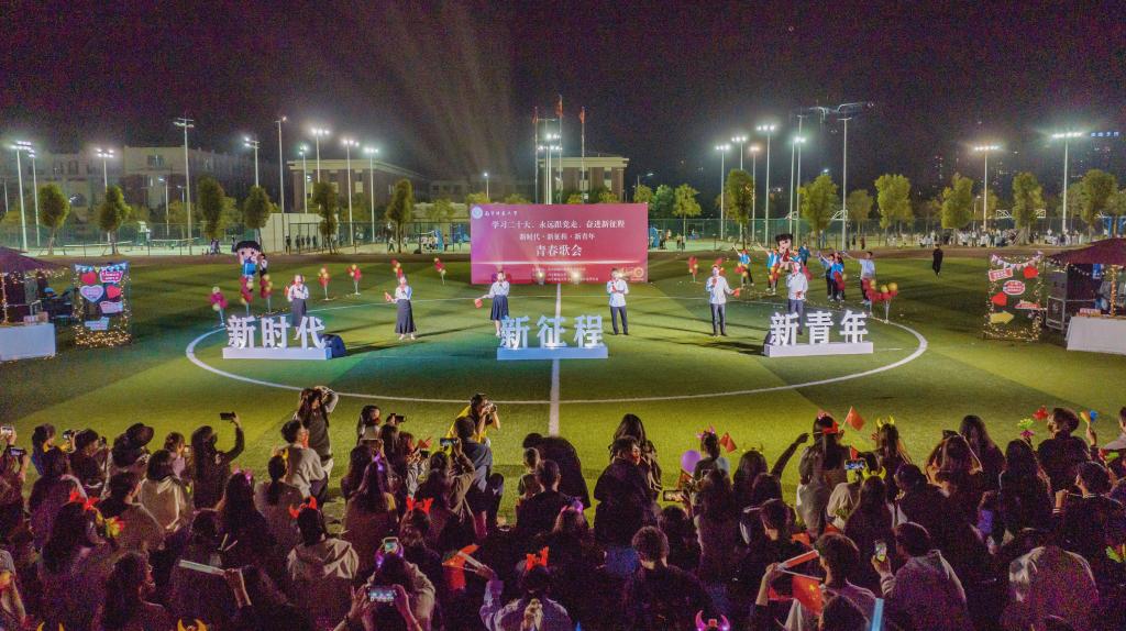 为持续深入开展“学习二十大,永远跟党走,奋进新征程”主题实践教育活动,11月5日,我校在武鸣校区足球场举办了“学习二十大、永远跟党走、奋进新征程”青春歌会,校团委负责人、音乐与舞蹈学院老师、武鸣校区各学院学生代表参加了本次活动。
