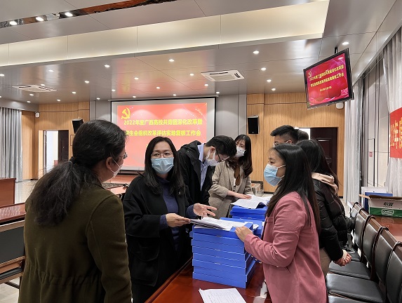 会上,区书记对实地复核工作组的到来表示热烈的欢迎,对共青团广西区委一直以来给予我校共青团工作的悉心指导表示衷心的感谢。她提出,目前学校团学组织深化改革工作虽取得一定的成效,但仍需对照深化改革的具体工作要求进一步完善提升,希望通过本次实地复核以评促建、以评促改,继续扎实推进我校共青团和学生会的改革工作。随后,工作组听取了南宁师范大学共青团深化改革情况、学生会(研究生会)深化改革情况的汇报,并查阅了我校共青团深化改革、学生会、研究生会改革工作台账。
