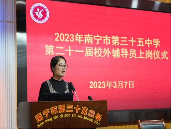 为帮助我校青年学生提升教师教学技能、培养文化教学素养,我校中学教师技能协会与南宁市第三十五中学团委达成校外辅导合作意向。3月7日下午,南宁市第三十五中学举办2023年第二十一届校外辅导员上岗仪式,该校党委邓慧珍书记、陈群生副校长、年级组长、班主任以及我校新一届校外辅导员参加此次仪式。仪式由南宁市第三十五中学校团委书记黄婧琳老师主持。