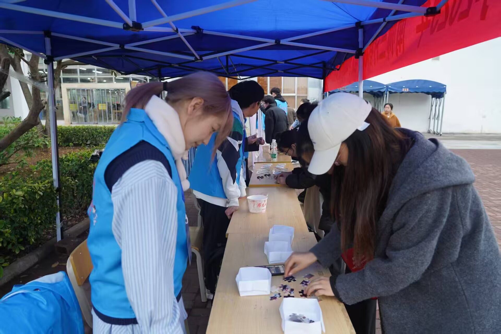 本次活动以线上、线下相结合的形式进行。线上开展了服饰文化摄影大赛和暖心故事分享活动,收获200余份作品。线下以现场展示的方式进行,通过解忧答疑、拼图复原、DIY串珠等活动来实现关爱传递,吸引2000余名同学参与。此外,还开展了读书分享会,现场阅读了《简爱》《茶花女》《阿勒泰的角落》等经典书籍精彩片段,在自由讨论和寄语互动环节,大家结合自身经历,从不同角度分享读书心得,畅谈人生感悟,现场书香氤氲。