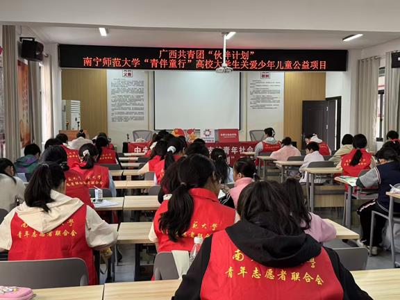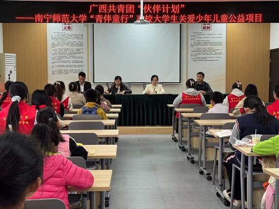 3月14日,我校“青伴童行”高校大学生关爱少年儿童爱心托管项目启动仪式在西乡塘区明秀南社区顺利举行。西乡塘区团委、北湖街道团委、我校团委负责人及项目志愿者、社区少年儿童共同参与活动。