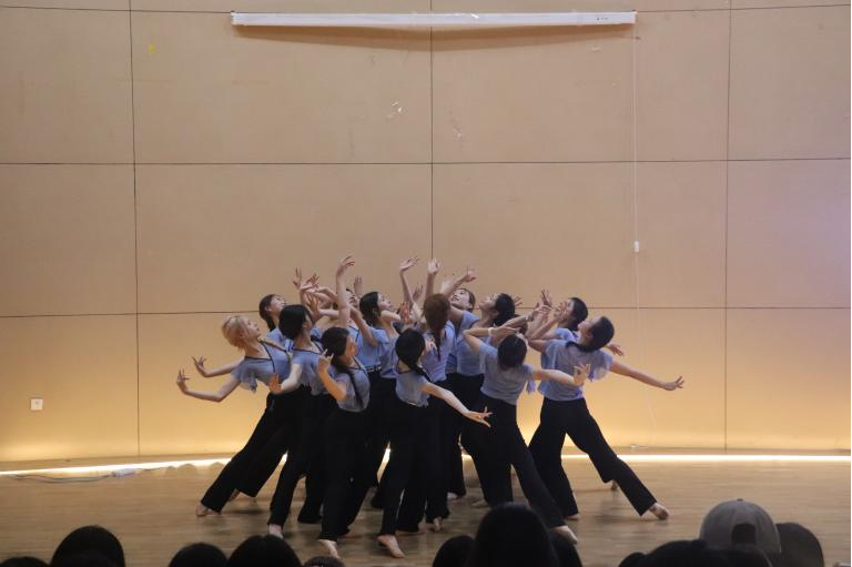 开场环节,乐队演绎的《阳光宅男》活力四射、节奏明快,动感的旋律瞬间点燃现场氛围。随后,舞蹈《流水桃花》《心跳旋律》《夕阳阿嘟沁》轮番登场,舞姿灵动、韵味十足,传递出别样的文化魅力,每一支舞蹈都赢得台下阵阵掌声。歌曲演唱环节同样精彩纷呈,《雨天》《天后》《月牙湾》《如愿》等经典歌曲温情开唱,婉转旋律直击人心,不少同学跟着旋律轻声跟唱,台上台下双向奔赴、默契互动,每一个瞬间都洋溢着青春的热忱与对艺术的热爱。活动落幕之后,参演同学纷纷表示,此次舞台不仅是一次展示自我的机会,更在排练与演出中锤炼了能力、收获了成长。