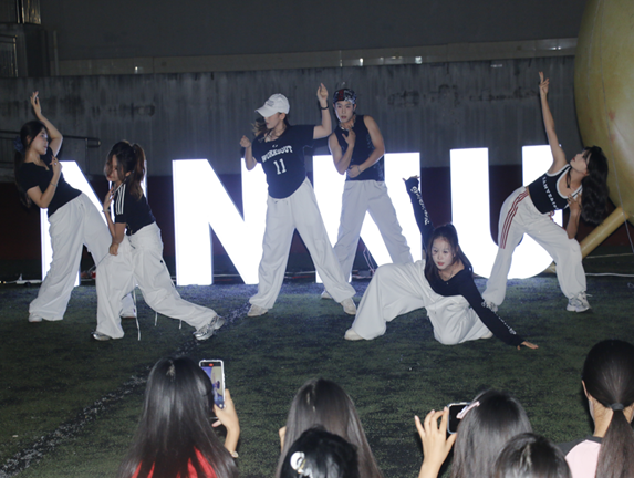 活动现场,活力四射的开场舞《Instruction》与节奏强烈的群舞《Dirty Work》相继登场,展现了学子们充满朝气的精神风貌。声乐表演环节更是精彩纷呈,从婉转动人的《牵丝戏》到温暖抒情的《慢慢喜欢你》,从充满力量的《鹿 be free》到引发全场共鸣的大合唱《逆光》,不同风格的歌曲接连上演,为观众带来多元的音乐体验。激昂澎湃的说唱《麒麟》与深情厚重的朗诵《寄东北流亡者》相得益彰,展现了学子们扎实的语言功底和深厚的情感表达能力。演出在高潮中落下帷幕,SPADE-ACE乐队接连演绎《带我去找夜生活》和《温蒂公主的侍卫》两首作品,强劲的节奏引发全场欢呼。整场活动通过舞蹈、声乐、器乐、朗诵等多种艺术形式的巧妙融合,让美育工作以更生动的方式融入校园生活。